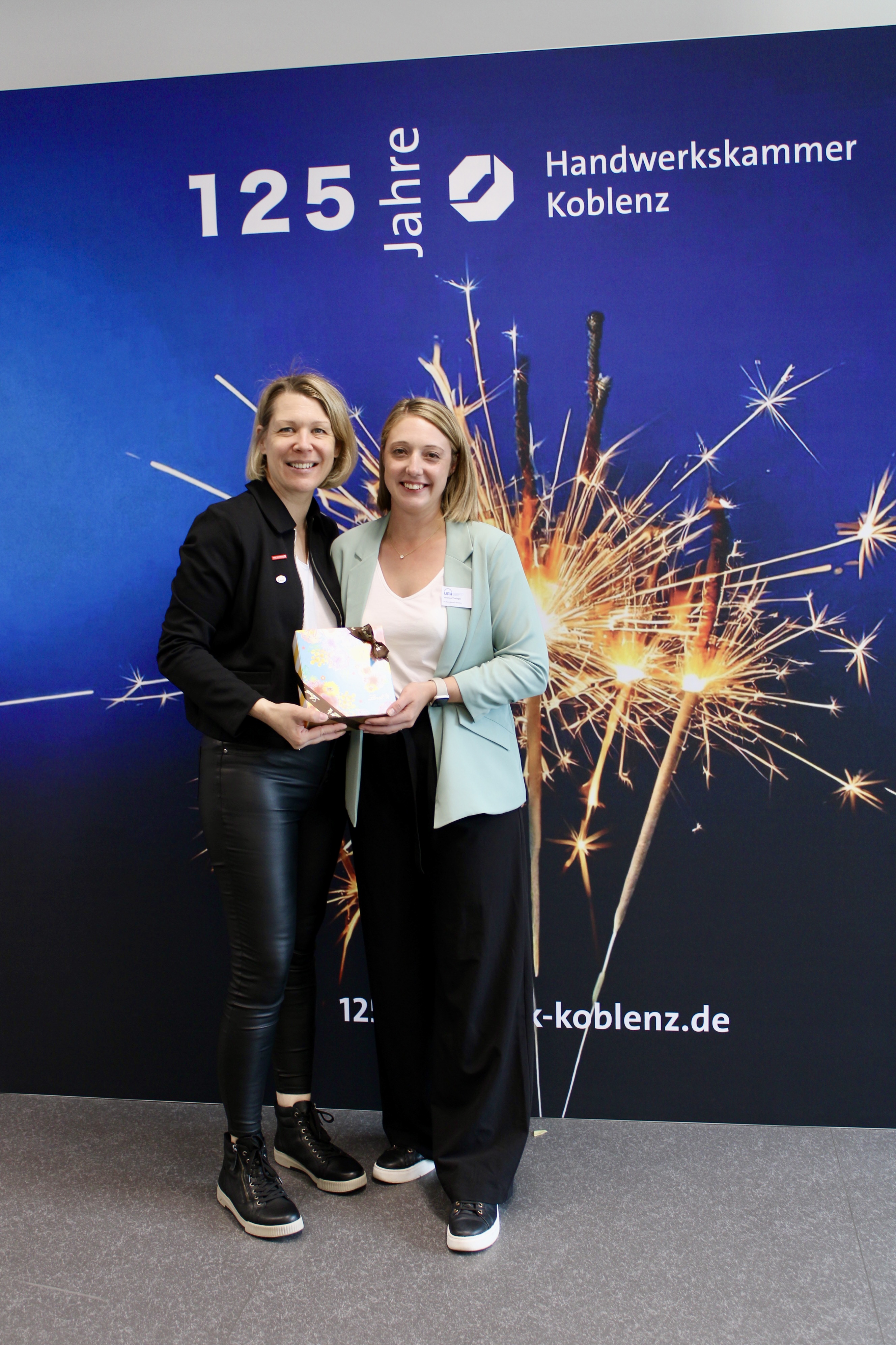 Unsere 1. Vorsitzende Vanessa Thieltges eröffnete die Tagung mit einer herzlichen Begrüßung aller Teilnehmerinnen und übergab Susanne Terhost, Geschäftsführerin Recht der Handwerkskammer Koblenz. Susanne Terhorst hieß uns in den modernen Räumlichkeiten der Handwerkskammer Koblenz willkommen. Sie würdigte deren Engagement für die Frauen im Handwerk und beleuchtete Veränderungen und Chancen, die Künstliche Intelligenz (KI) schon heute für das Handwerk bietet. Ein Kernthema der Landesverbandstagung 2025.