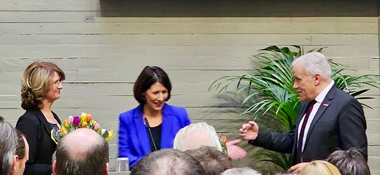 Bereits der Empfang im Eingangsbereich spiegelte Wertschätzung und Nähe wider: Kurt Krautscheid und Ralf Hellrich begrüßten die fast 600 Gäste persönlich. Im Anschluss gingen die Teilnehmende durch ein Spalier von Dachdeckern, Glückspfennige für das Jahr 2026 verteilten – ein sympathisches Detail, das Tradition und Zuversicht miteinander verband und für viele ein Lächeln bereithielt.
